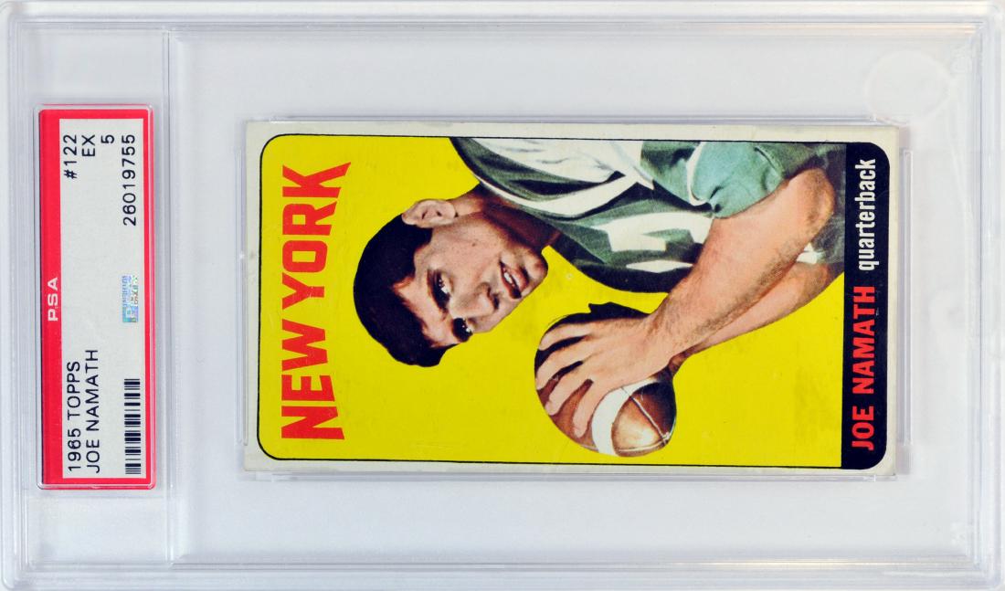 Joe Namath Rookie Card : 1965 Topps Joe Namath Rookie 122 Psa Mint 9 Football Cards Lot 80032 Heritage Auctions. What's really important to us is that his 1965 rookie card is now worth 265,000 dollars as of a february 2018 auction, which is way, way up from its previous high of 95,000 bucks just a few years earlier. Ross is the founder of old sports cards and has been collecting sports cards for over 30 years. Free shipping on qualified orders. 1965 topps football #122 joe namath rookie card rc graded sgc nr mint+ 7.5 jets. Joe namath football cards sort by recently added card # oldest newest highest srp highest price lowest price biggest discount highest percent off print run least in stock most in stock ending soonest listings 6 8 10 12 14 15 16 18 20 24 30 40 50 64 100